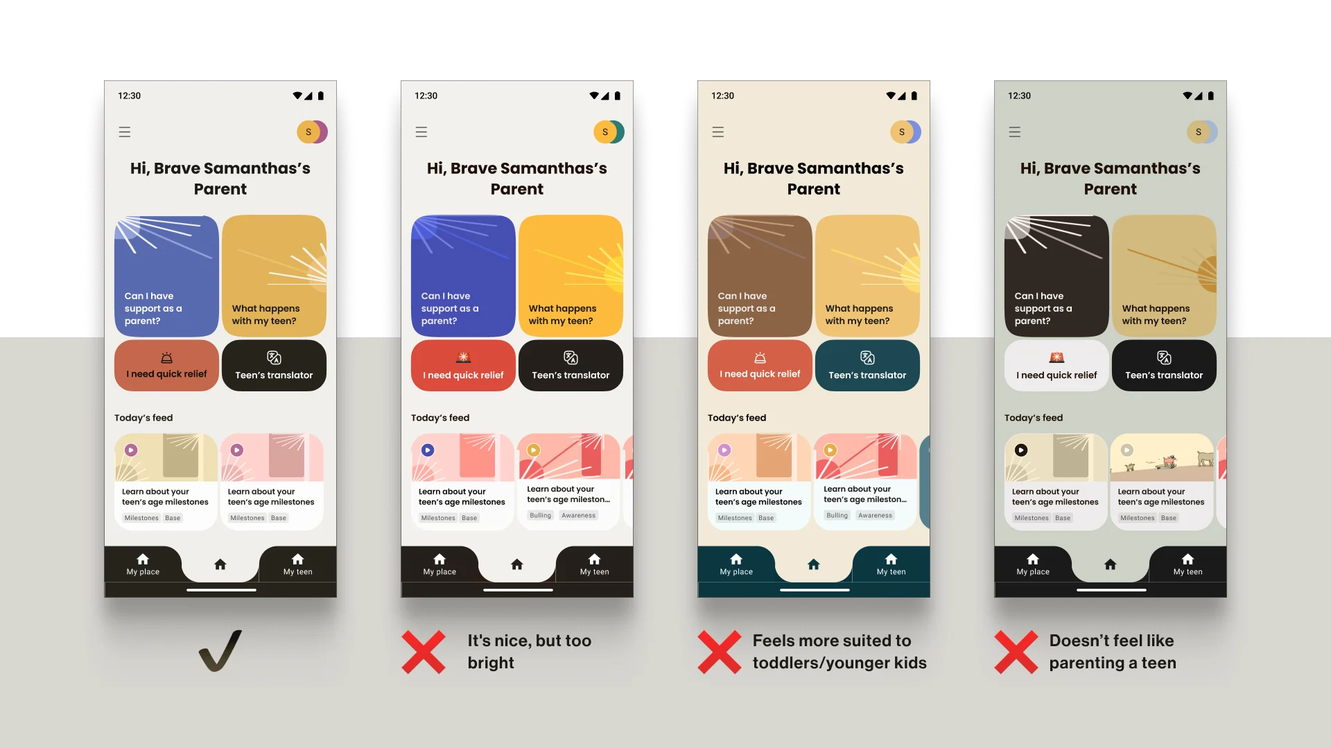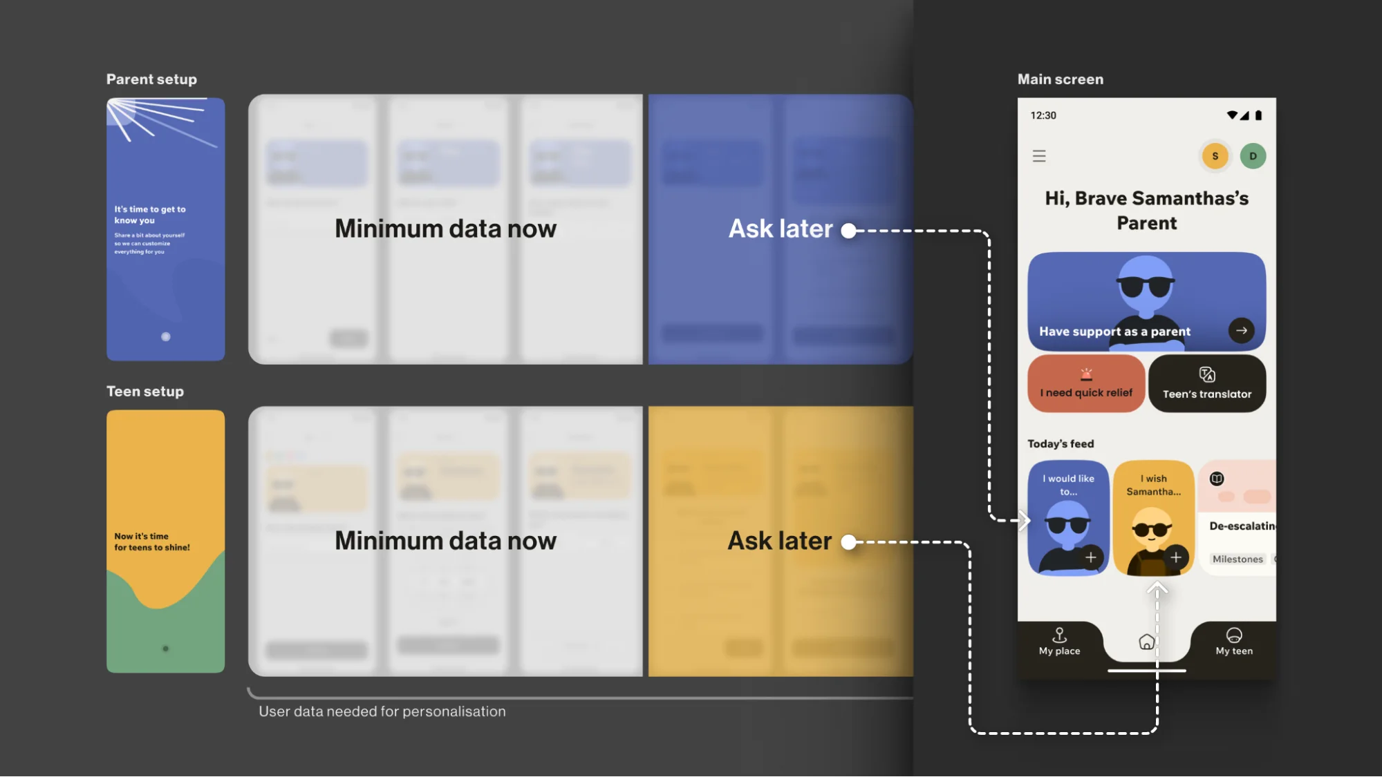 At Teeni, an app for parents of teenagers, onboarding requires an approach that solves two problems: (1) acknowledge the emotional load of parenting teens and show how the app can share that load; (2) collect just enough information to make the first feed relevant.