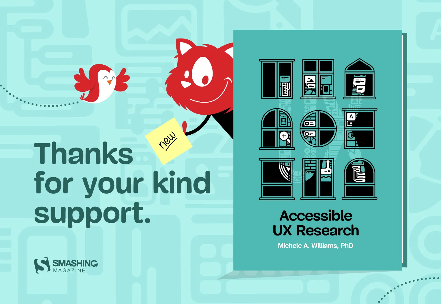 Smashing Library expands again! We’re so happy to announce our newest book, Accessible UX Research, is now available for download in eBook formats. Michele A. Williams takes us for a deep dive into the real world of UX testing, and provides a road map for including users with different abilities and needs in every phase of testing.