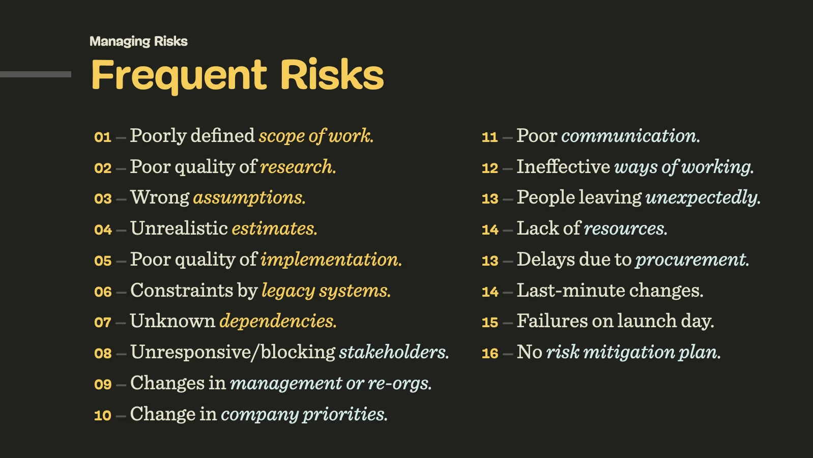 Bottlenecks, blockers, legacy constraints, big unknowns.